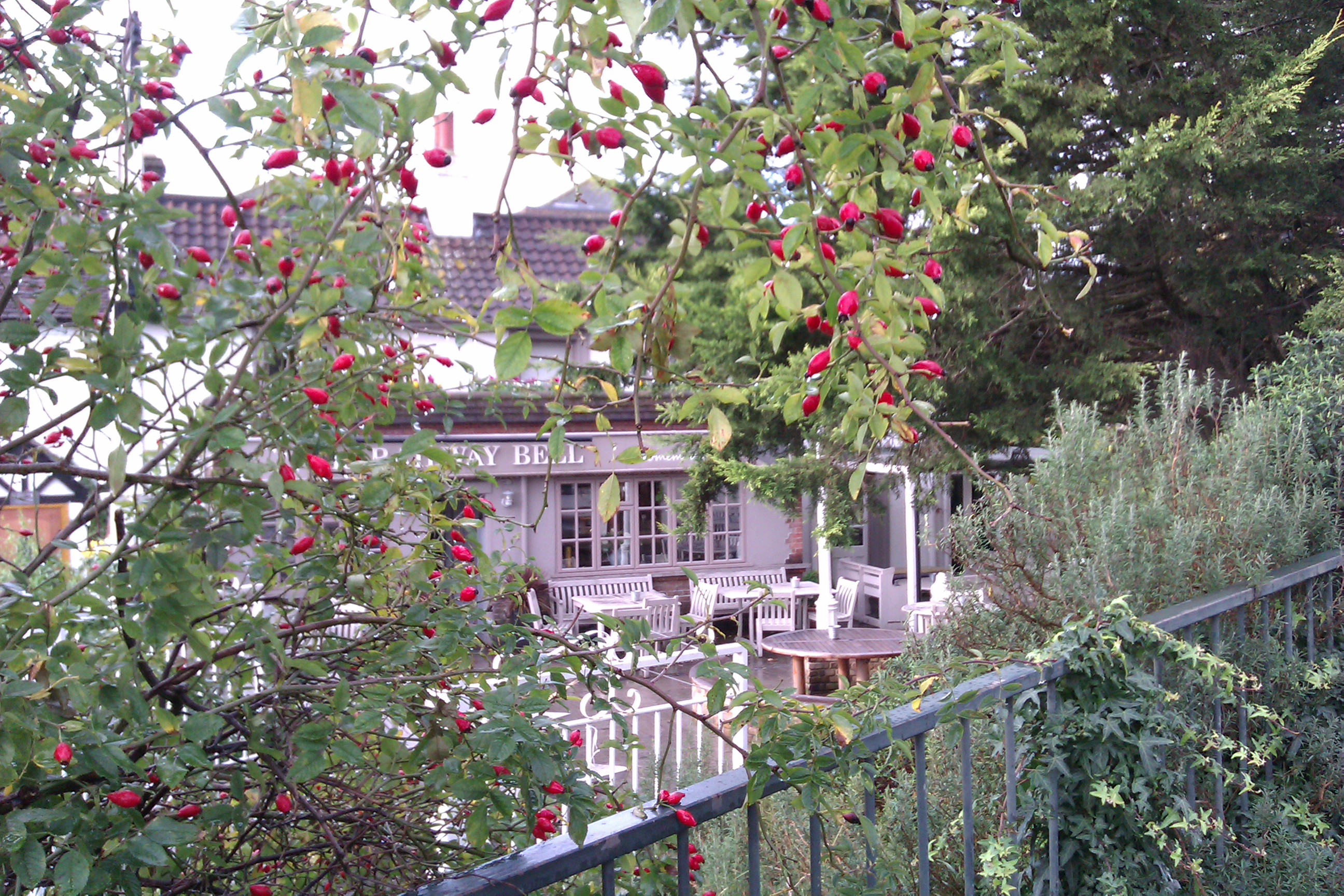 From the bus there’s a sea of umbrellas and fine spraying rain. But I’m happy because of the hat and a horse chestnut which hammers the top of the bus with fists full of conkers. And on the walk home, there are berries.