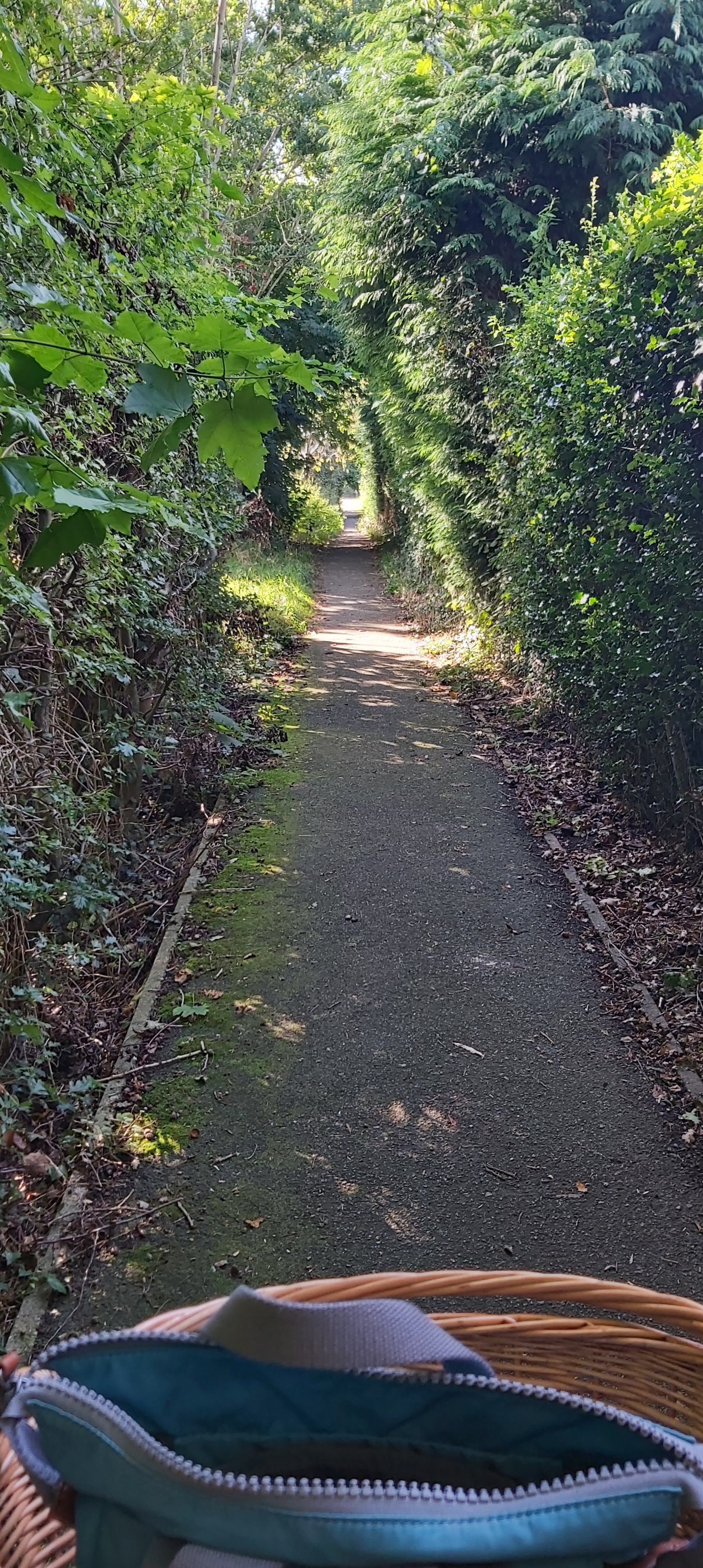 I cycled into town today to post a book. I love cycling, and I love autumn, at least when the weather is like it was today – drowsy and warm, and smelling of mown grass and earth. I cycled along the twittens (Sussex word for alleyways). The sun fell down through the trees and landed on the ground in small bursts or shapes like open mouths. The cycling and the yellowness of things – they made me glad. I was so in love with the speed and the sunshine that I cycled along the pedestrian-only bits too. There was no one walking there.