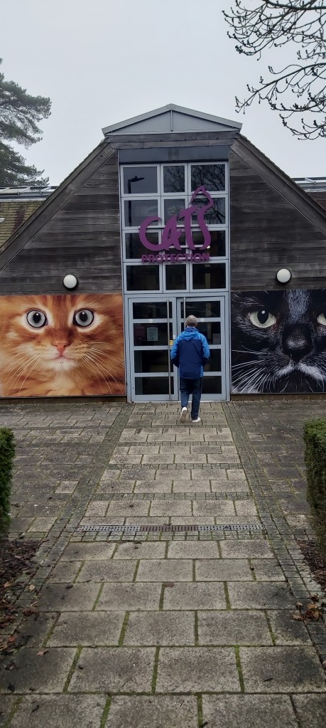 It was so not like that. The building was large and modern. The reception buzzed with purpose and activity – people on computers, others on the phone. One or two pushed their way through large swing doors into a long light corridor lined with windows. Behind the windows were cats, all in their own quite spacious areas. At least, bigger than I’d imagined.
