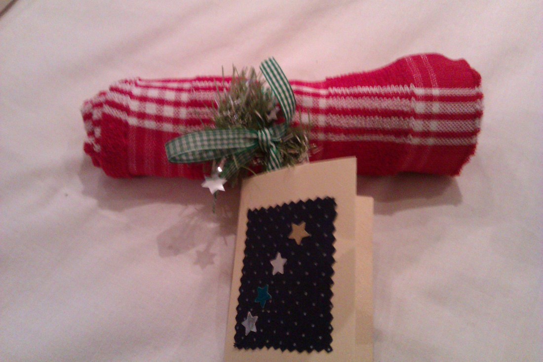 A best mate bought me a tea towel. It was red and white and tied with checked ribbon and tinsel. She’d made a card too, which was decorated with a square of material and gold stars. It may end up being my best present. On a day of driving rain and gridlocked roads, she came … Continue reading Christmas Hunters of the World, Unite…